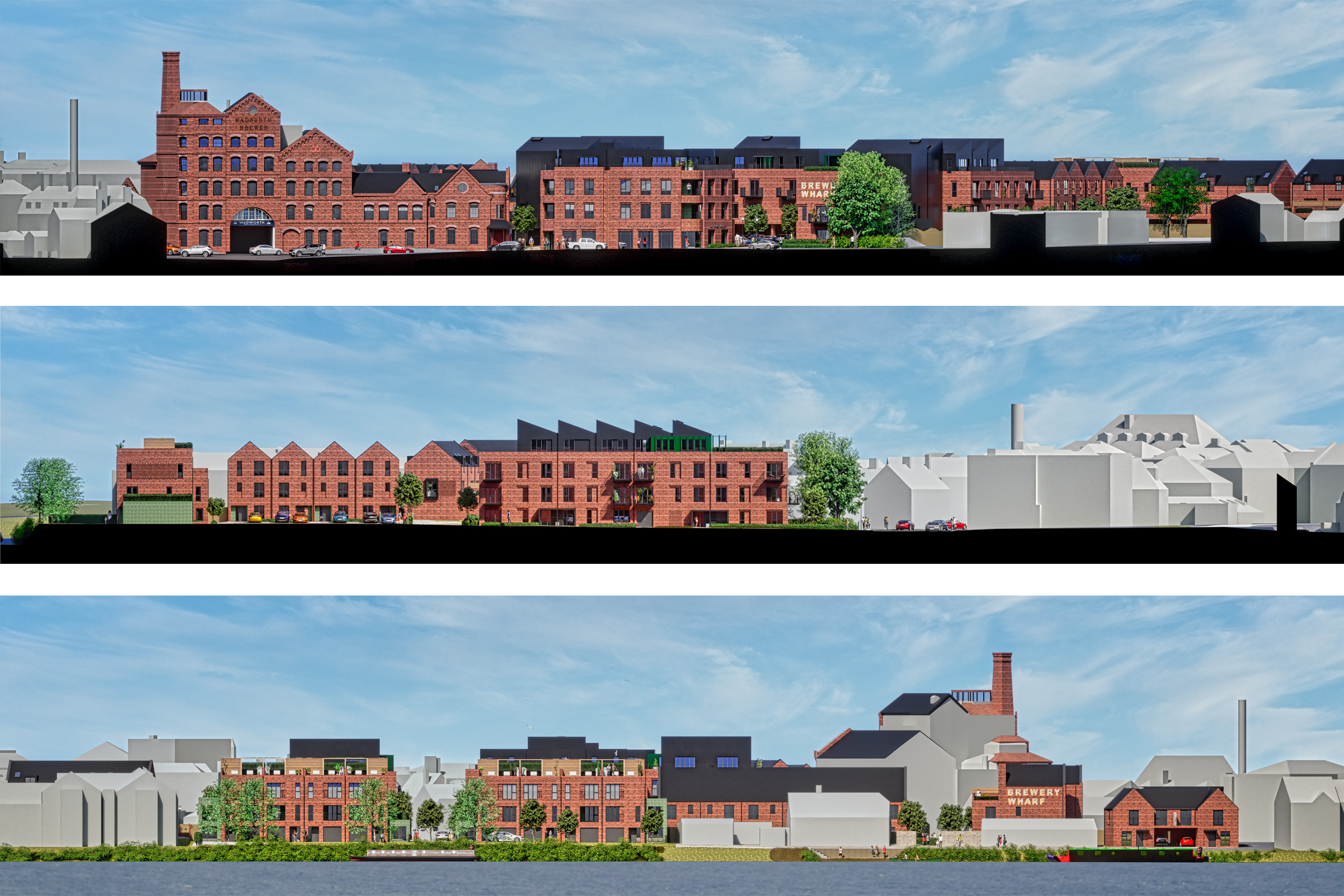 Brewery Wharf Devizes is a new urban quarter for a popular regional market town. Here a mix of flats, houses and urban houses offer a wide range of homes to suit all generations and pockets. Integral to the design concept is how we use the roof scape not only to provide safe, useable outdoor spaces but to add character and identity to placemaking. Here, the urban apartments feature dramatic monopitch roofs with roof terraces which reference the sites industrial heritage whilst the family houses all have dual pitched roofs. Orientation is designed to optimise south facing PV panels which can either be built in or retrofitted without spoiling the aesthetic appearance of the development. Sited alongside retained listed brewery buildings the development has a distinctive silhouette against the sky and a cohesive overall character. A small number of urban town houses with 3rd floor roof gardens offer an extended range of house types located with elevated views over the canal side and far reaching views over the surrounding countryside.