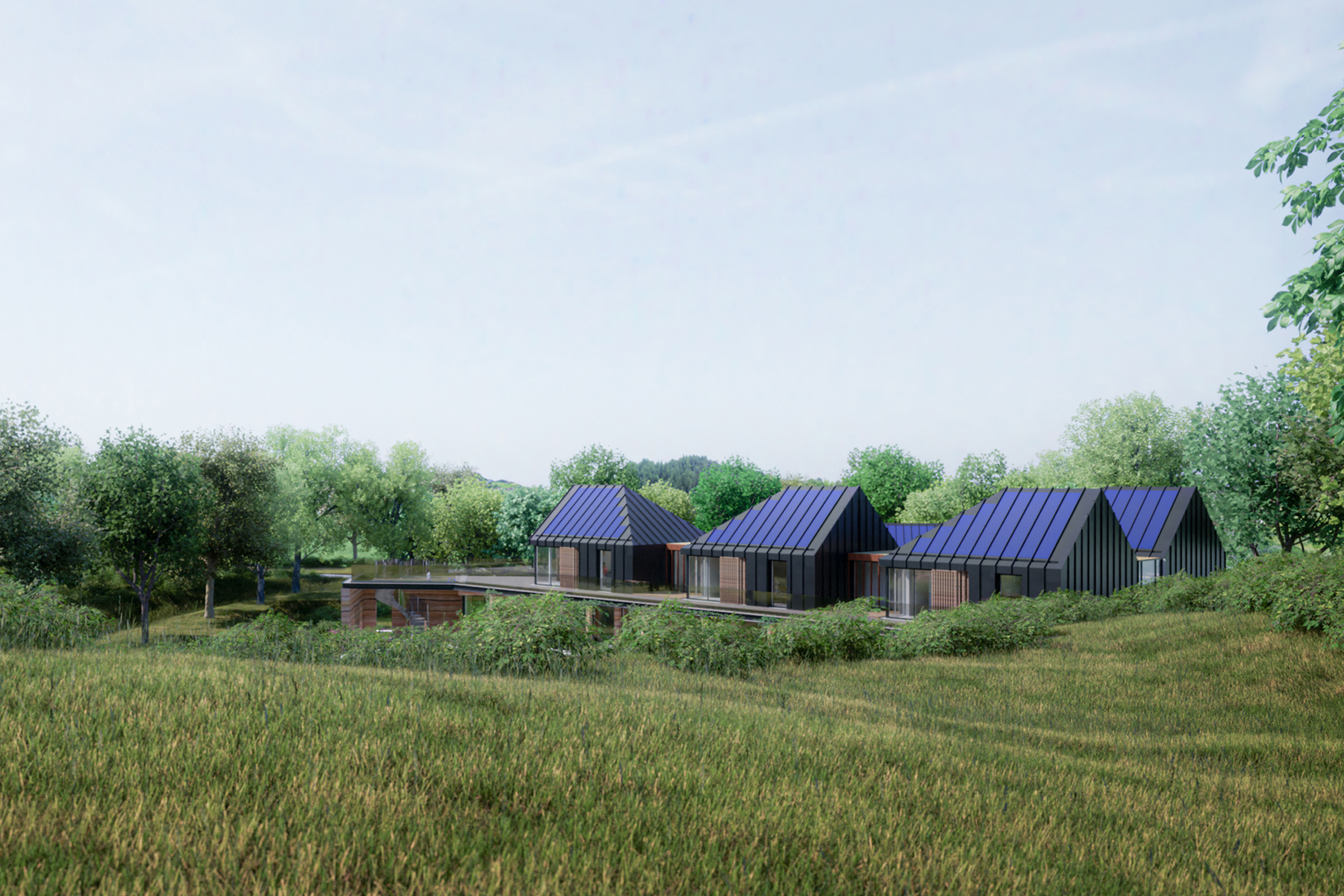 Frilsham Quarry is a “Paragraph 80” development of two exceptional dwellings in a disused lime quarry the Berkshire countryside. To satisfy very challenging NPPF planning criteria the designs are of outstanding quality and sensitive to the setting. To reduce building mass and to enable an articulated fragmented roofscape the dwellings are “inverted” with kitchen, dining and living spaces above the bedrooms, guest accommodation, gym and home cinema which allows each home to enjoy both a private enclosed garden and an elevated roof terrace designed as an outdoor extension of the living space. The silhouette is inspired by the form – and helps tell the story – of the old lime hoppers, remains of which still can be found in amongst the rubble on the site.