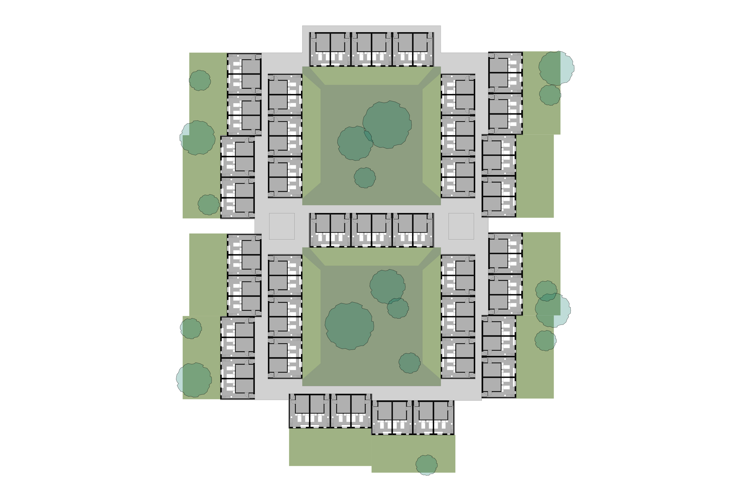 The accommodation blocks are laid out in courtyards to provide protected outdoor spaces for the children to play and explore safely. Each courtyard follows a similar planting style to maintain cohesion while focusing on a different sensory experience to provide a variety of learning and experiential spaces.