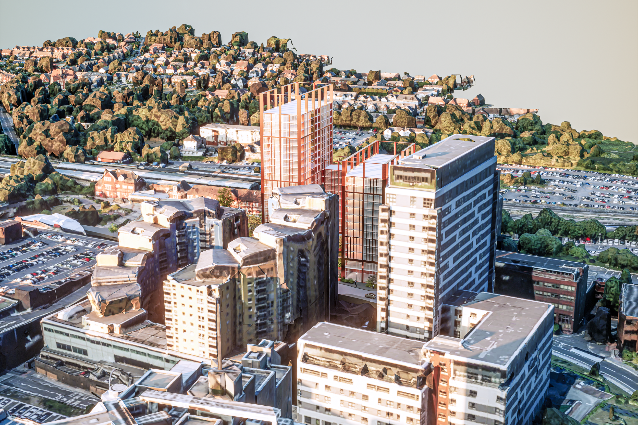A total of 220no 1B and 2B flats over two floors of commercial floorspace and podium car parking is proposed. This will build upon the town’s identity as a forward-looking, sustainable, and connected place to live and work.