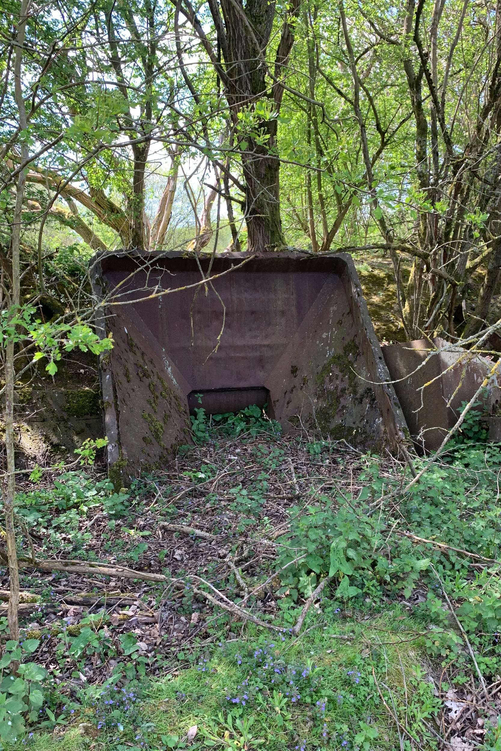 Here one of the three metallic volumes is visible and takes the form of an inverted lime hopper inspired by discarded artefacts on the site. This provides the ideal vaulted form for well ventilated living spaces, whilst creating a striking visual reference to the industrial quarrying heritage.